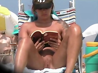 Nudist beach opened up gams fur covered cunny CFNM spycam close-up