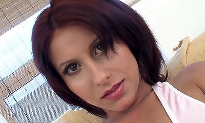 Sweet brunette chick Aurora Pursue gives really good blowjob