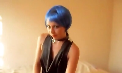 Blue haired emo stunner Jewelz Blu gives a nice blowjob on Xmas eve