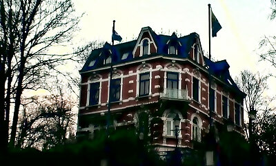 A bit plump pale brunette gets mouthfucked rigid by masked horny dudes