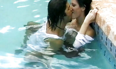 Raw and sextractive lesbians are dancing in the pool
