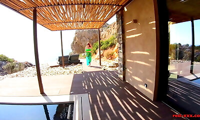 Busty redhead MILF Red Xxx gets off poolside