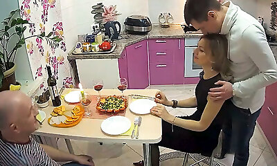 Drinked a student and pummeled in the kitchen on the table. Cumshot on face
