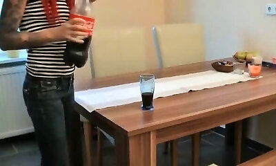 Cute Goth Teen Suck Off A Big Sausage & Gobble Up All The Cum