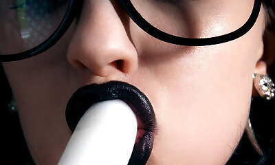 Young Emo Puts on Dark Red Lipstick and Plays with Huge Puffy Nips
