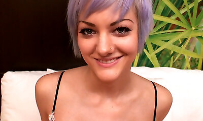Hot blue haired punk girl gets pounded by a huge cock and moans in pleasure