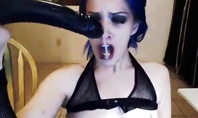 Unbelievable brunette European goth chick on webcam masturbating