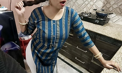 Stepmother seduces her stepson for the hard-core fucking in the hot kitchen in hindi