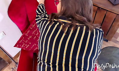 Big Step Mother's hard-on was caught by her nerdy stepson and she asked him to lick it