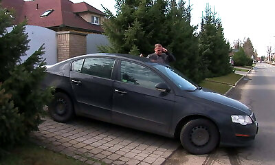 Big trunk stud finds this hot blondie milf dressed like a slut