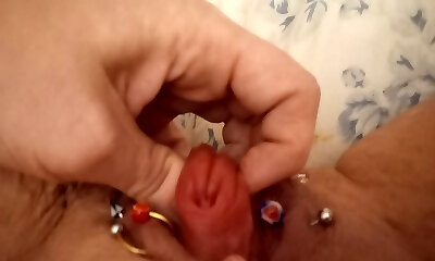 Close Up Ample Wet Pierced Clit Masturbating