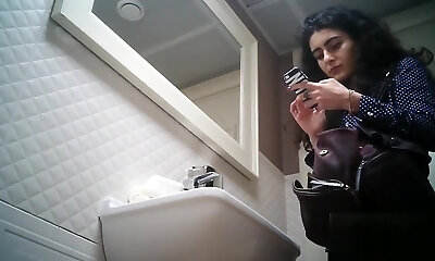 Scorching Russian babe with juicy body poses in the bathroom and pees