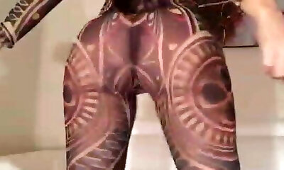 Kinky tattooed ebony nympho exposed her really huge booty and thick tits